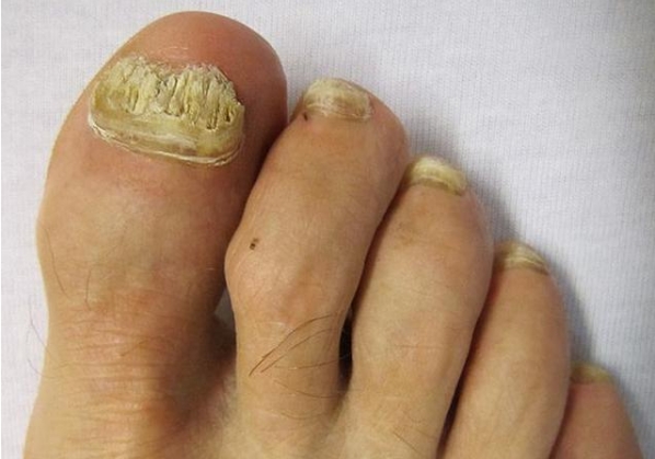 灰指甲在临床上又被称为甲癣,中医称鹅爪风,现在则叫甲真菌病,它是由一大类称做病原真菌的微感染引起的。甲癣病变始于甲远端、侧缘或甲褶部,表现为甲颜色和形态异常。一般以1-2个指(趾)甲开始发病,重者全部指(趾)甲均可罹患。患病甲板失去光泽,日久甲板变脆而破损脱落。多呈灰白色,且失去光泽;甲板增厚显著,表面高低不平。其质松碎,甲下常有角蛋白及碎屑沉积。有时,甲板可与甲床分离。