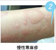 慢性荨麻疹:病情反反复复,时多时少,长年累月不愈,治疗可达2个月以上。病情时重时轻,全身症状一般较轻,大多数患者找不到病因。