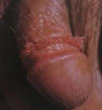 男性尖锐湿疣的症状:在生殖器温度较低而且干燥部位的损害常常表现为小而扁平状,而在温热,湿润部位者常呈丝状或乳突瘤状,初发时为少数微小淡红色丘疹,渐渐增大及增多,表面凹凸不平,湿润而柔软,呈大小不等的乳头状、鸡冠状、蘑菇状等,摹样或融合成大团块呈菜花样突起,红色或污灰色。