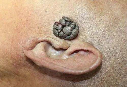 尖锐湿疣初起时为小而柔软的淡红色疣状丘疹,逐渐增大、增多,表面凹凸不平,呈乳头、菜花或鸡冠样;有时融合成大的团块,表面粗糙,呈白、红或污灰色。在妊娠、严重肝脏疾病和自身免疫功能低下时,可迅速生长,明显增大。可破溃、渗出、继发感染。