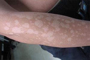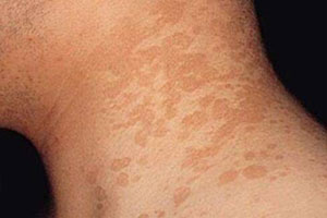 3、致病环境:如果人们自身患有一些慢性消耗性疾病的话,自身的抵抗力就可以下降,从而就比较容易患有花斑癣。还有就是身体虚弱、营养不良、患有糖尿病等都是常见的花斑癣发病的诱发因素。