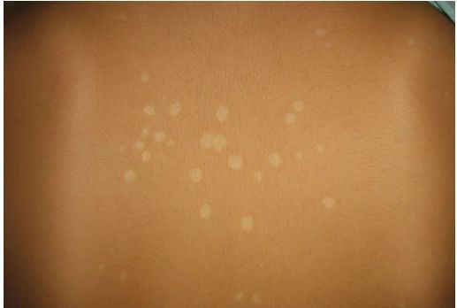 3、白斑型:除去鳞屑或痊愈后,遗留色素暂时减退。