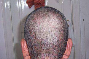 1、银屑病:患者头面部损害分散成片状,界限分明,将鳞屑刮除后,下面为红色发亮的薄膜,轻刮薄膜可出现散在小出血点。